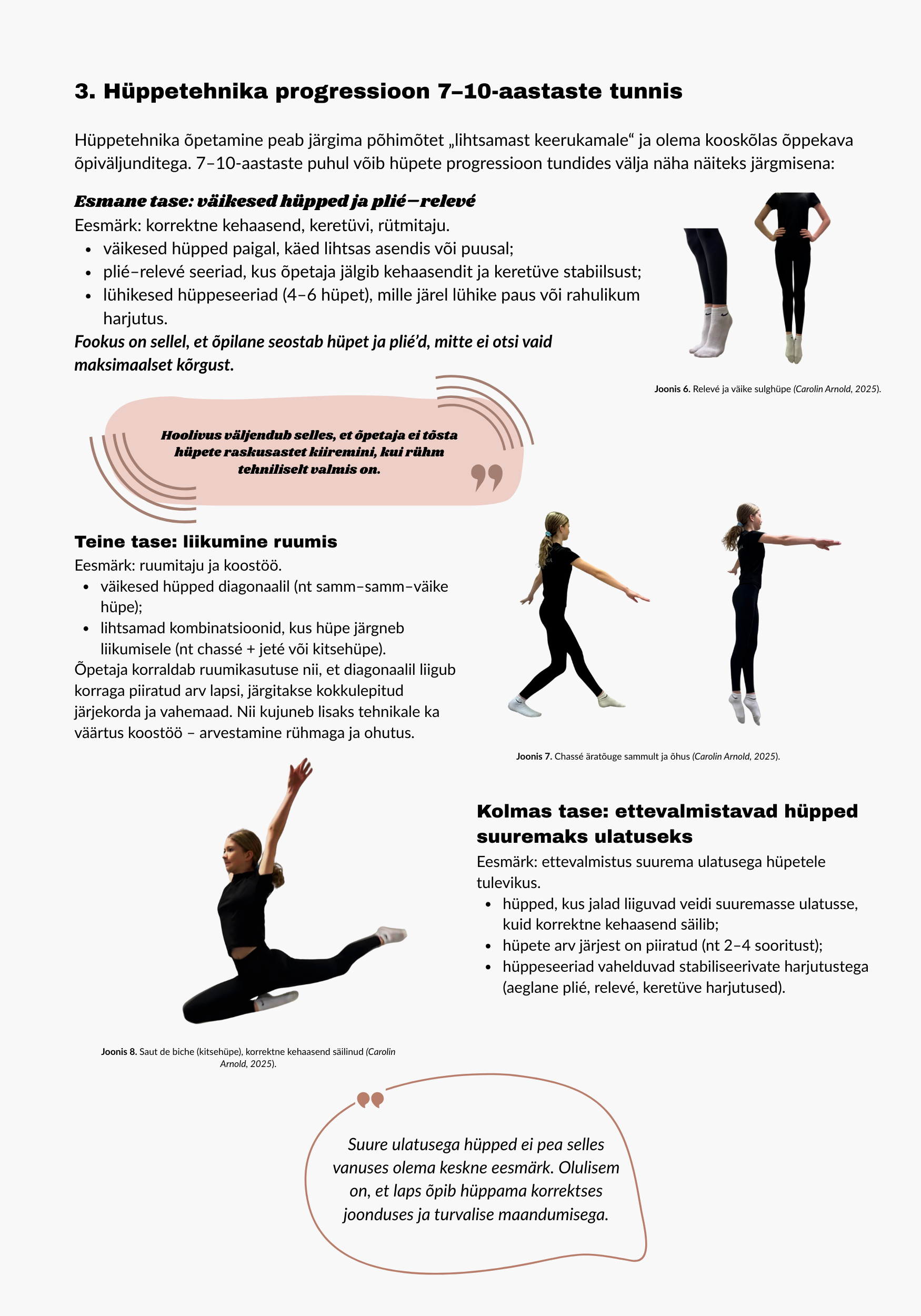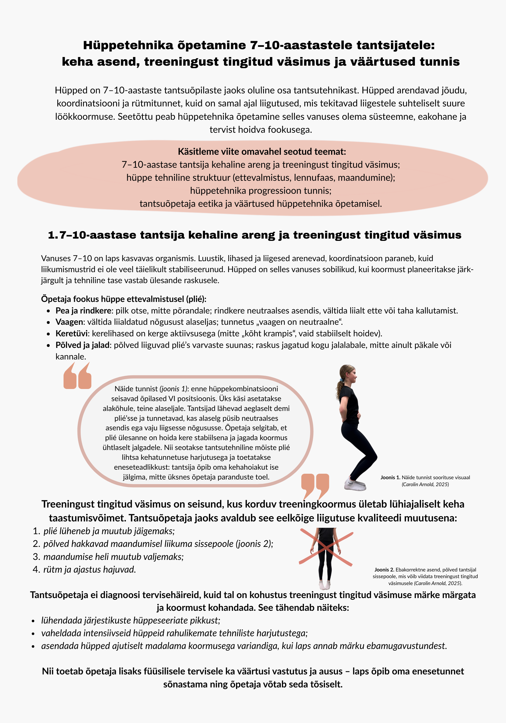 Õppeteksti “Hüppetehnika õpetamine 7-10 aastatele tantsijatele” avaleht (Carolin Arnold, 2025)